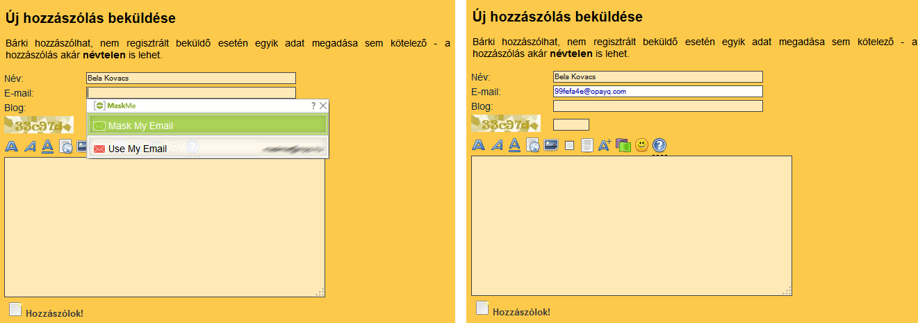 A szakmai nyelvben identitásmenedzsmentként említett funkciót eddig nem igazán lehetett a webes böngészési gyakorlatban látni, noha akadémiai körökben intenzíven foglalkoztak vele, még hazai pályán is készült diplomaterv a témában. A MaskMe ezt a rést kívánja betölteni (Chrome változat), ugyanis lehetővé teszi a különböző identitások alá tartozó adatok kényelmes kezelését, mint ideiglenes email címek, vagy a "kimaszkolt" bankkártya adatok. Ez utóbbi a fizetős változat része, aki nem fizet online túl sűrűn, annak az ingyenes megoldás is megfelelő lehet (és a biztonság kedvéért pedig PayPal-t, vagy internet kártyát érdemes használni). Tényleg pofonegyszerű a használata: