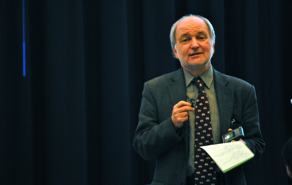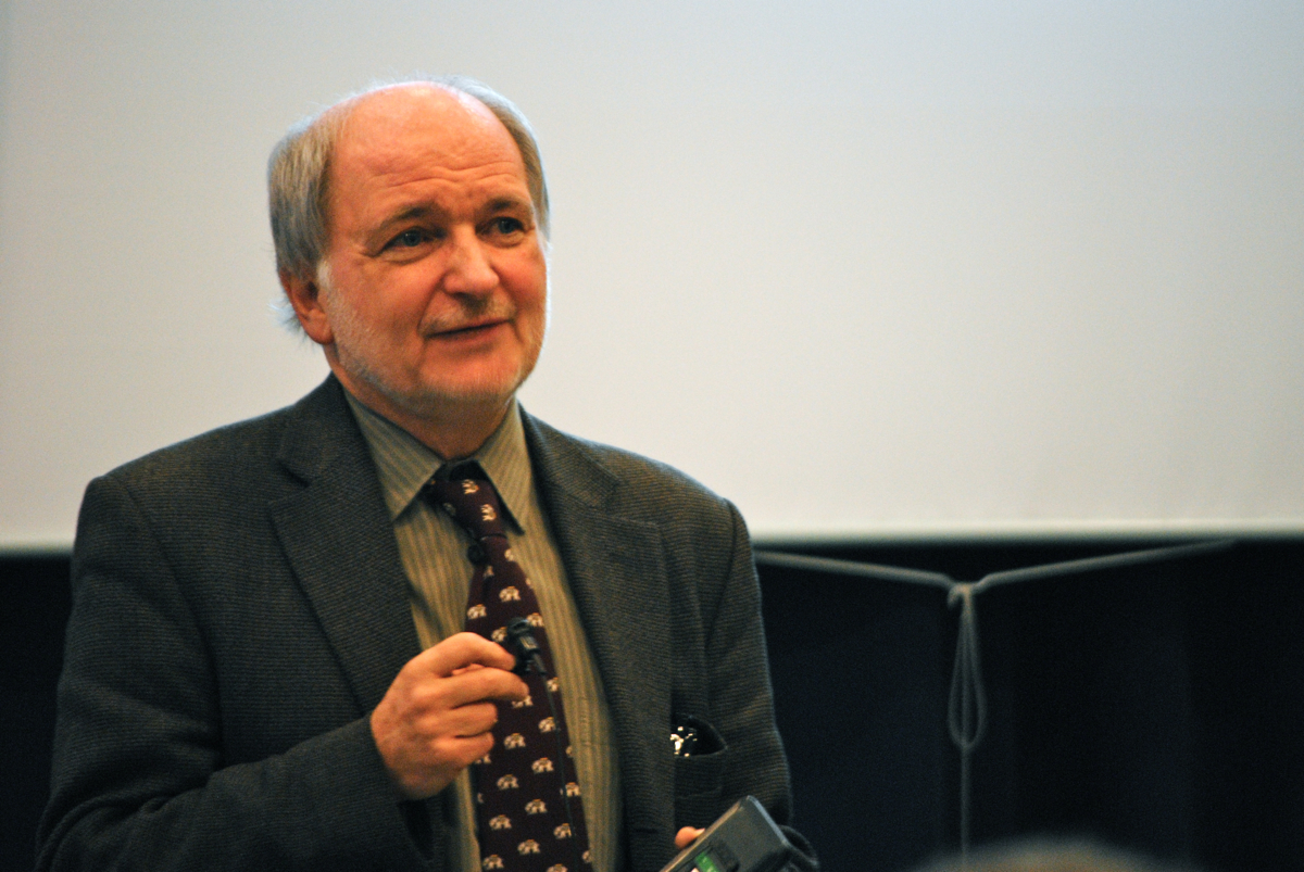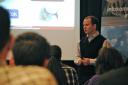 Balra egy ujjlenyomat fal volt kivetítve, a bemutató a jobb oldalin volt